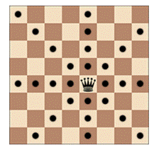 Η Βασίλισσα μπορεί να κινηθεί σε οποιοδήποτε τετράγωνο κατά μήκος της κάθετηςή της οριζόντιας γραμμής ή μιας διαγώνιου στην οποία βρίσκεται.