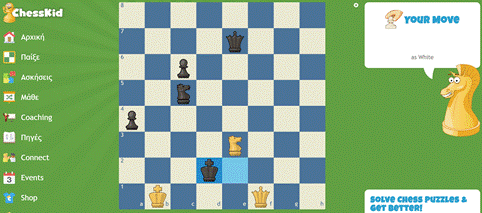 Εικόνα 2. Στιγμιότυπο με παράδειγμα άσκησης εξάσκησης από την ιστοσελίδα chessKid