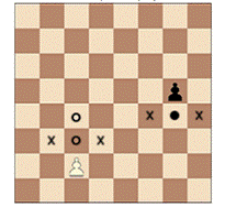 Το πιόνι μπορεί να κινηθεί προς τα εμπρός, στο τετράγωνο αμέσως μπροστά του στην ίδια κάθετο, με την προϋπόθεση ότι το τετράγωνο είναι ελεύθερο.