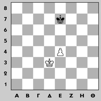 8. Για να ολοκληρώσεις τη σκακιέρα σου θα πρέπει να βάλεις γράμματα και αριθμούς ώστε να μπορείς να προσδιορίζεις κάθε ένα από τα 64 εσωτερικά τετράγωνα. Τα γράμματα και οι αριθμοί θα τοποθετηθούν όπως δείχνει η παρακάτω εικόνα Έτσι, κάθε τετράγωνο αποκτά όνομα π.χ. Ε3, θ7 βάζοντας πρώτα το γράμμα της στήλης στην οποία βρίσκεται και έπειτα τον αριθμό της γραμμής. Στην εικόνα, ο λευκός Βασιλιάς βρίσκεται στο τετράγωνο Δ3, ο μαύρος Βασιλιάς στο Ε7 και ο λευκός στρατιώτης στο Ε4.
