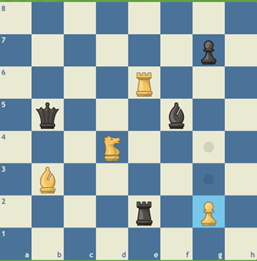 | 1. Σε ποιο κομμάτι μπορεί να φτάσει ο λευκός Αξιωματικός, στον Ίππο ή στη Βασίλισσα; | 2. Με πόσες κινήσεις το λιγότερο μπορεί ο Πύργος να φτάσει στο τετράγωνο που βρίσκεται ο στρατιώτης; |