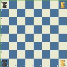| 3. Σε πόσα τετράγωνα θα μπορούσε να πάει στην επόμενη κίνηση ο λευκός Ίππος; | 4. Ποιο είναι το πιο μακρινό τετράγωνο στο οποίο μπορεί να κινηθεί ο μαύρος Αξιωματικός; |